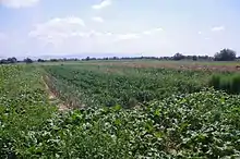 North Macedonia possesses 10,140 km² of agricultural land, which is almost 39% of its territory. Half of this land is devoted to crop growing, and the other half livestock farming. The country has 48,606.75 hectares of forests.[17] Macedonia distinguishes itself by the smallness of its agricultural properties: 80% of them are between 2.5 and 2.8 hectares, and are divided into small parcels. The former state-owned businesses, which are much bigger, are generally in financial difficulties due to incomplete privatisations.[2]