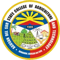 The Agusan del Sur State College of Agriculture and Technology is a chartered state university in Bunawan, Agusan del Sur, Philippines through Republic Act (RA) No. 7932 approved on March 1, 1995, and RA No. 11586.[1][2][3]