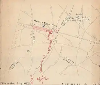 The Aigues-Vives tramway (French Chemin de Fer d'Aigues-Vives-Bourg a Aigues-Vives PLM or colloquially La Lignette) was a 2 km (1.2 mi) long narrow-gauge railway with a gauge of 600 mm (1 ft 11+58 in) in Aigues-Vives in the department Gard in Southern France. It operated from 1892 to 1901.[2]