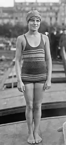 Her family settled in Brooklyn Heights in New York[5] and at the age of eleven she became a charter member[lower-alpha 1] of the celebrated Women's Swimming Association (WSA) of New York[6] which was founded by Charlotte Epstein. Her first WSA swimming coach was Louis de B. Handley of the New York Athletic Club,[7] double gold medalist at St. Louis in 1904.
