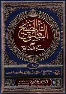Al-Taleeq al-Sabeeh ala Mishkat al-Masabih (Arabic: التعليق الصبيح على مشكاة المصابيح) is a multi-volume commentary on the hadith collection known as Mishkat al-Masabih. It was written by Idris Kandhlawi in Arabic and first published in Damascus in 1935.[1] The commentary aims to assist readers in studying and comprehending the hadiths in a scholarly manner. It covers various topics related to hadith sciences, such as the classification of hadiths, principles of hadith criticism, the reliability of narrators, and the criteria for accepting a hadith as authentic.