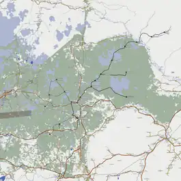 The Alapayevsk narrow-gauge railway (Russian: Алапаевская узкоколейная железная дорога, АУЖД) is a Russian narrow-gauge railway with a track gauge of 750 mm (2 ft 5+1⁄2 in). The Head Office of the narrow-gauge railway is located in Alapayevsk, Sverdlovsk Oblast. 57°50′50″N 61°40′21″E / 57.84731°N 61.67245°E
