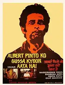 Albert Pinto Ko Gussa Kyoon Aata Hai (transl. Why Does Albert Pinto Get Angry?) is a 1980 Indian Hindi-language drama film directed and written by Saeed Akhtar Mirza. The film stars Naseeruddin Shah, Shabana Azmi and Smita Patil in the lead roles.[1][2][3][4]