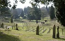 The graves are set in well-tended steep rolling grounds of 15 acres (6.1 ha), traversed by many tarmacadam paths. The area is well wooded with oaks, pines, firs and chestnut trees, interspersed with yew topiary and rhododendrons.