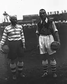 - 1 2 James is credited with having scored an additional goal in the 7–3 Scotland win again Ireland in 1929. There was some controversy over Scotland's sixth goal in that both Hughie Gallacher, who had already scored four times, and Alex James went for the ball at the same point. Correspondence between Queen of the South FC and the Scottish Football Museum in 2016 favoured Gallacher, stating "Hughie himself was insistent that the goal was his, claiming that as he and Alex James (who was a good friend of his) were of a similar build (and of course in 1929 there were no numbers on the jerseys), it was easy for pressmen to make a mistake".[12] James remains credited with the goal in some sources (including the Scottish Football Association website profiles as of 2021).[11][13]