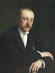 Erik Henningsen painted a portrait painting of him in 1880 and Peder Severin Krøyer painted another one in 1898. He is also one of the men seen in Krøyer's monumental 1904 oil on canvas group portrait painting Men of Industry (Frederiksborg Museum). Other depictions of him includes a caricature by Axel Thiess in Klods-Hans (1900 and 1908). Herman Vedel painted a portrait painting of him in 1927 (Pharmaceutical Society of Denmark).[1]