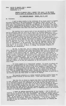 Remarks of Senator John F. Kennedy on the Senate Floor in Reply to Criticism on his Call for Freedom for Algeria