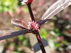 These are annual or perennial herbs or subshrubs. While some of the better-known species are aquatic plants, most are terrestrial.[4] They take many forms, from prostrate to erect to floating. The leaves are oppositely arranged. The inflorescence is a spike or a rounded head occurring in the leaf axils or the ends of branches. The flowers have 5 tepals. There are 3 to 5 stamens which are fused into a rim at the bases, and 5 pseudostaminodes, appendages between the stamens that are not true staminodes. The fruit is a utricle containing one seed.[2]