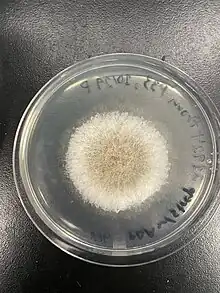 A. roeperi hyphae in culture on MYEA under a dissecting microscope