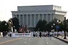 The America Supports You banner leads Freedom Walk participants onto the Memorial Bridge toward Arlington, Virginia (September 9, 2007).