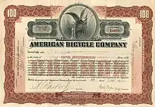 American Bicycle Company 100 shares of stock (January 20, 1900)