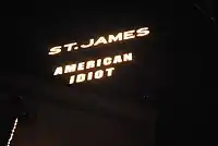 American Idiot is a sung-through rock musical based on the concept album of the same name by rock band Green Day. After a run at the Berkeley Repertory Theatre in 2009, the show moved to the St. James Theatre on Broadway. Previews began on March 24, 2010, and the musical officially opened on April 20, 2010. The show closed on April 24, 2011, after 422 performances. While Green Day did not appear in the production, vocalist/guitarist Billie Joe Armstrong performed the role of "St. Jimmy" occasionally throughout the run.