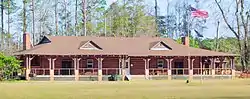 The American Legion Hut (Decatur, Mississippi), also known as the Newton County American Legion Post No. 89 Hut, was built in 1934. With 24 acres (9.7 ha), it was listed on the U.S. National Register of Historic Places in 2007. It is significant for its Rustic style architecture as applied in Mississippi, which includes use of horizontal log walls, exposed rafters and trusses, and stone fireplaces.[2]