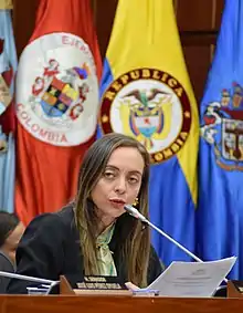 Ana Paola Agudelo García (born 5 May 1983) is a Colombian economist and politician member of the MIRA Party. She was elected to the Congress of Colombia as Representative of the Colombian expatriates for the 2014–2018 term[1][2] with 4663 votes.[3] In 2018 she was elected Senator with over 70,000 votes.[4]