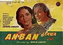 Anban is a 1944 Bollywood social film directed by Niren Lahiri. It stars Pahari Sanyal and Nargis.[1] The film was produced by Bharat Productions, with the music by Gyan Dutt.