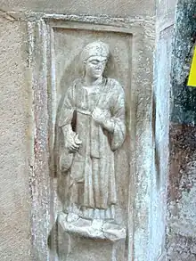 Since almost no depictions of women survive from the La Tène period, archaeologists must make do with Roman provincial images. In these, women are seldom depicted bare-headed, so that more is known about headcoverings than about hairstyles. Celtic women of this time wore winged caps, felt caps in the shape of upturned cones with veils, cylinder-shaped fur caps, bronze tiaras or circlets. The modius cap was a stiff cap shaped like an inverted cone which was especially common in the first century AD around Virunum. It was worn with a veil and rich decoration and indicated women of the upper class. The veil worn over the cap was often so long that it could cover the entire body. In north Pannonia at the same time, women wore a fur cap, with a spiked brim, a veil cap similar to the Norican one and in later times a turban-like head covering with a veil.[84] Among the Celtiberian women a structure, which consisted of a choker with rods extending up over the head and a veil stretched over the top for shade, was fashionable.[85]