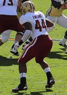 Williams attended Boston College, where he played for its Eagles football team from 2010 to 2013.[7] He graduated early with a degree in applied psychology and human development.[1]