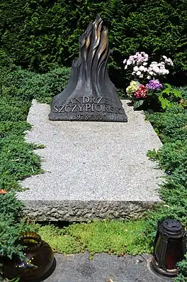 In 1956–1958, he was selected to serve in the Polish Embassy to Denmark, after which he returned to work as an editor on the radio and for publications. He later served as a member of the Polish legislature. He was also a UNICEF Goodwill Ambassador.[4] Prior to his death, Szczypiorski converted to Calvinism, and is buried in the Protestant Reformed Cemetery in Warsaw.