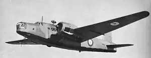 At RAF Habbaniya, No. 4 Flying Training School RAF (4FTS) had a miscellany of obsolescent bombers, fighters and trainers. Many of the 84 aircraft were unfit for offensive use. At the start of hostilities, there were about 1,000 RAF personnel but only 39 pilots.[50] On 1 April, the British had three Gloster Gladiator biplane fighters used as officers' runabouts, thirty Hawker Audax biplane close co-operation aircraft, seven Fairey Gordon biplane bombers, 27 twin-engine Airspeed Oxford trainers, 28 Hawker Hart biplane light bombers (the bomber version of the Hawker Audax), twenty Hart trainers and a Bristol Blenheim Mk1 bomber. Audaxes could carry eight 20-pound bombs (9.1 kg) and twelve were modified to carry two 250 lb (110 kg) bombs. The Gordons could each carry two 250 lb bombs and the Oxfords were converted from carrying smoke bombs to carrying eight 20 lb bombs. The Hawker Harts could carry two 250 lb bombs. The Hawker trainers were unarmed and the Blenheim departed on 3 May. There was also an RAF Iraq Communications Flight at Habbaniya with three Vickers Valentia biplane flying boats.[51] At RAF Shaibah there was 244 Squadron with some Vickers Vincent bombers.[52] The naval forces available to support British actions in Iraq were part of the East Indies Station and included vessels from the Royal Navy (RN), the Royal Australian Navy (RAN), the Royal New Zealand Navy (RNZN) and the Royal Indian Navy (RIN).
