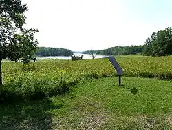 Grand Council Treaty No. 3 is the traditional government of the Nation.[34] Alexander Morris' records of his dealings with the Grand Council in 1873 recount details of his dealings with what he called "the Indian Council": "The nation had not met for many years, and some of [the Chiefs] had never before been assembled together." The origins of the Grand Council may predate written records. Historically, "The sturgeon during spring spawning season supported the assembly of up to 1,500 people at fishing stations on Rainy River. At Couchiching Falls (present-day Fort Frances), the Anishinaabe national government met each spring, relying upon abundant spawning runs of sturgeon and stored supplies of manoomin, maple sugar and Indian corn."[35] Traditionally, "Anishinaabe of Lake of the Woods and Rainy Lake had many different types of leaders, including Grand Chief, first and second rank civil chiefs, first and second rank soldiers, war chiefs, pipe bearers and messengers." The government of the Nation derived from and rested upon consent of the people. "Traditional values featured a distrust of excessive power and an emphasis upon consensual, rather than representative, democracy."[36] The Midewiwin Society, though systematically persecuted by colonial authorities, was also an integral part of the Nation's government: "The Midewiwin or Grand Medicine Society, a ranked curing society, operated in conjunction with the Grand Council, and many of its healers were also powerful chiefs such as Powawassin and Mawintopinesse. The annual spring Grand Council on Rainy River was also the occasion of Mide ceremonial activity."[37]