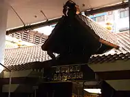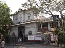 The temple is built on a 40-cent land near the Visveswarayya Tower.[2] The temple has shrines for Ganesha, Muruga, Durga, Anjaneya, Navagrahas and Nagaraja.[1] The main sanctum of Lord Ayyappa faces west with Lord Ganesha and Lord Subramanya to the left and Goddess Durga to the right, all facing east. The Navagraha shrine is located on the southeast corner of the temple and the Anjaneya shrine is located in the southwest corner, facing east.[2] The main door at the entrance is covered with brass plates. There is an auditorium, named after Sri Adisankara, covering about 3,600 sq ft,[2] which can accommodate about 1,000 persons,[1] for conducting spiritual and cultural programmes and discourses. The design of the auditorium involves the Koothambalam style found in Kerala temples.[2]