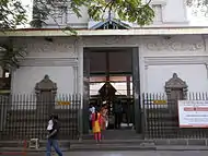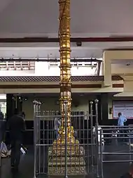When Anna Nagar was developed as a model town in the late 1960s, the annual vilakku pooja during the mandala makaravilakku season was celebrated by Ayyappa devotees in the newly formed Shanti Colony. The residents' response to this annual celebration resulted in the formation of the Sri Ayyappa Seva Samajam (SASS) in 1976, with 14 members in its committee. In 1979, the Samajam started a charitable medical centre for the poor and needy.[1] The same year, a 7-ground land near the Visveswarayya Tower was allotted to the Samajam by the Tamil Nadu Housing Board for the construction of a temple, for which members contributed 38,000 towards initial payment.[1] Initially, a makeshift temple was built in a thatched shed along with a charitable medical centre in another shed.[2] Work on the construction of a permanent temple continued for the next five years in consultation with temple architect Kanipayyur Krishnan Namboodiri. The construction was guided by P. N. Subramaniam, the founder-president, P. Chandrasekhara Menon, the second president, and P. V. Nair, and financial support was provided by R. Ratnam, then chairman of Sundaram Industries, and P. Velayudham.[1] In May 1984, the typical Kerala-style temple was completed, conforming to the traditional shastraic stipulations. The kumbabishekam and consecration of the idol were performed on 13 May 1984 by temple Thantri Abli Krishna Vadhyan Namboodiri and K. M. Kesva Battatripad, former chief priest of the Sabarimala Temple.[2] The panchaloha Ayyappan idol was made by Chenganur T. Rajarathinam.[1] Idols of Ganesha, Subramanya, Goddess Durga, and Anjenaya were also consecrated. Later, a Navagraha (the nine planets) shrine was added in the temple. In 1989, a unique architectural structure known as the Natamandapam with an imposing gopuram was added. In 2005, gold covering of the 22-paras (segments) dwajasthambam and 27 thazhikakudams with about 6 kg of gold was completed. A special kumbabishekam of the gold-covered dwajasthambam was performed on 20 June 2005.[2]