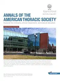 The Annals of the American Thoracic Society is an official medical journal of the American Thoracic Society (ATS). It publishes original clinical and epidemiological research in the fields of pulmonology, critical care medicine, and sleep medicine.[2] Known colloquially as the "White Journal", the Annals of the American Thoracic Society is one of four journals published by the American Thoracic Society, along with the American Journal of Respiratory and Critical Care Medicine ("Blue Journal"), American Journal of Respiratory Cell and Molecular Biology ("Red Journal"), and ATS Scholar.[3]