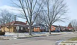 During World War II, the African-American population in Detroit ballooned to 300,000 residents.[2] However, blacks were restricted in where they could live due to housing covenants, overpriced rent, and other forms of discrimination.[2] To alleviate the shortage of housing space, Julius and William Schwartz platted the Annapolis Park suburb in what was then Nankin Township and is now Westland, specifically for African-Americans.[2] The neighborhood was platted in three sections: one in 1953, one in 1954, and one in 1955.[3] A fourth Annapolis Park platting, in 1961, is not included in the Historic District. When local banks proved reluctant to provide mortgages to prospective home owners, the Schwartzes also established the Franklin Mortgage Company to make loans to residents.[2]