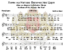 Anthem of His Majesty the Tsar or God Save the Tsar (Bulgarian: Химн на Негово Величество Царя, [ximn na nɛɡovo vɛlit͡ʃɛstvo t͡sarjɐ]) was the royal anthem of the Kingdom of Bulgaria from 1908 to 1944. The original music was written by Emil von Sauer.[1] Later the composition by Emanuil Manolov was adopted, and the lyrics were written by Major General Georgi Agura. During this period, the national anthem of the Kingdom of Bulgaria was Shumi Maritsa and the "Anthem of His Majesty the Tsar" was played immediately after it on every solemn occasion in the Tsar's presence.