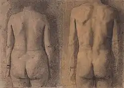 Two Backs (Male-Female), pencil on paper, 38cm x 54cm, 1964