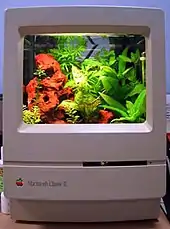 Objects used for aquariums include: coffee tables, sinks, and even toilets.[49] Another such example is the MacQuarium, an aquarium made from the shell of an Apple Macintosh computer.[50] In recent years, elaborate custom-designed home aquariums costing hundreds of thousands of dollars have become status symbols—according to The New York Times, "among people of means, a dazzling aquarium is one of the last surefire ways to impress their peers."[49]