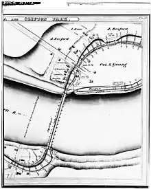 Aqueduct is a hamlet in the Town of Niskayuna, Schenectady County, New York, United States. Its center is at the south end of the bridge of New York State Route 146 (Balltown Road) over the Mohawk River, that connects Schenectady County to the south and Saratoga County to the north. It was formerly a transportation hub. Alexander's Bridge across the Mohawk (see the map) antedated the Aqueduct. A new Route 146 steel highway bridge, with board pavement, parallel to the Aqueduct was built in the early 20th century.[1] A Schenectady trolley line ended there, the line also serving Luna Park, just over the river in Rexford. There was, in Aqueduct, a staffed station of the Troy & Schenectady Railroad, which operated from 1841 to 1932.