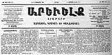 The newspaper was started by a collaboration of many Armenian writers including Arpiar Arpiarian.[1] It was a literary and political newspaper with democratic tendencies. It subsequently attracted numerous writers who would eventually form the core of the Armenian realism movement. The paper became a prestigious opinion maker and was published uninterruptedly until the Armenian genocide of 1915.[1]