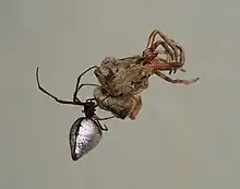 - ↑ Whitehouse, Mary E. A. (1986-04-01). "The foraging behaviours of Argyrodes antipodiana (Theridiidae), a kleptoparasitic spider from New Zealand". New Zealand Journal of Zoology. 13 (2): 151–168. doi:10.1080/03014223.1986.10422658. ISSN 0301-4223.