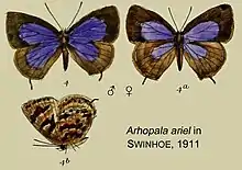 Arhopala ariel is a butterfly in the family Lycaenidae. It was described by William Doherty in 1891. It is found in the Indomalayan realm (Assam, Peninsular Malaya, Thailand, and Borneo).[2]