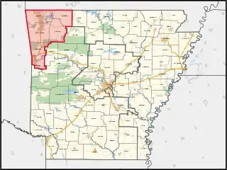 Arkansas's 3rd congressional district is a congressional district in the U.S. state of Arkansas. The district covers Northwest Arkansas and takes in Fort Smith, Fayetteville, Springdale, and Bentonville.