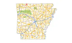 - ↑ 1956 Carroll County, Arkansas Map (PDF) (Map) (Revised 1961 ed.). Arkansas State Highway and Transportation Department. Retrieved 2010-07-06.