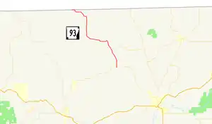 Arkansas Highway 93 (AR 93 and Hwy. 93) is a north–south state highway in Randolph County, Arkansas. The route of 14.66 miles (23.59 km) runs from AR 90 north to the Missouri state line.[2]