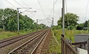 Nothing is left of the station but trains still pass the site on the electrified East Coast Main Line.