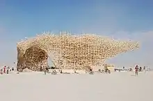 In 2006, he gained a lot of attention by building Uchronia: A message from the future, a large wide wooden sculpture at the Burning Man festival in Black Rock City, in the Nevada desert, United States. Cityscape (2007) and The Sequence (2008) are two of his giant wooden public art installations in the centre of Brussels, Belgium. It was the first time a sculpture gave the impression touching two buildings in the city center while traffic still passes by underneath it. The installation for the Flemish Parliament became an unequivocal actor in the city. In Munich, Germany, he built Traveller (2008) for French luxury fashion and leather goods brand Louis Vuitton.[2] Other public art installations by Arne Quinze have recently been revealed in the centre of Paris, France (Rebirth, 2008),[3] Beirut, Lebanon (The Visitor, 2009)[4] and Louisville, Kentucky (Big Four Bridge, ongoing)[5]
