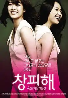 Ashamed (Korean: 창피해; RR: Changpihae), also known under the international title Life Is Peachy, is a South Korean queer film written and directed by Kim Soo-hyeon. This is Kim's second feature film after 2004's So Cute. Ashamed was released in theaters on December 8, 2011, but had already been making the rounds on the festival circuit. The film had its world premiere in the New Currents section at the 15th Busan International Film Festival[2][3] and screened in the Panorama section at the 61st Berlin International Film Festival.[4][5]