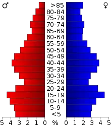 In the county, the population was spread out, with 25.40% under the age of 18, 11.20% from 18 to 24, 25.80% from 25 to 44, 21.70% from 45 to 64, and 15.90% who were 65 years of age or older. The median age was 37 years. For every 100 females there were 97.10 males. For every 100 females age 18 and over, there were 91.10 males.