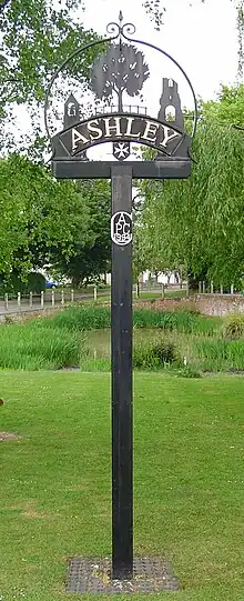 Ashley is a village and civil parish in the East Cambridgeshire district of Cambridgeshire, England, about 4 miles (6.4 km) east of Newmarket. The modern village consists of the two ancient parishes of Ashley and Silverley. Ashley covers 2,250 acres (910 ha) and in the 2011 census had a population of 749.[1] Ashley is in the electoral area of Cheveley ward.