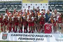 Coach Arthur Elias established an open-age team in 2011,[2] who finished as Campeonato Paulista runners-up in their first season. The roster was significantly bolstered ahead of the 2012 season, with the addition of ten players from Paulista champions Santos, who had been disbanded. This included national team players Érika and Maurine.[3] The local government and the Brazilian Football Confederation (CBF) sourced funding and sponsorship for the team, designed to help elite players prepare for the 2012 London Olympics.[4]