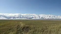The At-Bashy Range (Kyrgyz: Ат-Башы тоо кыркасы) is a mountain range in the south part of the internal Tien-Shan. The range is located in At-Bashy District of the Naryn Region in Kyrgyzstan. The length of the range is 140 km (87 mi) and the width of the range is 30 km (19 mi). The highest parts of the At-Bashy Range, with elevations of more than 4,500 m (14,800 ft), are in its middle part while lower elevated parts, below 4,000 m (13,000 ft), are in the west and in the east. The average height is around 4,280 m (14,040 ft) with the highest point of 4,786 m (15,702 ft).[1]