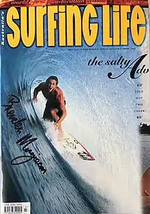 Surfing Life, formerly Australia’s Surfing Life, the magazine was founded in 1985 by Peter Morrison[1] In 2016 it was purchased by Morrison Media publisher and General Manager Craig Sims[2] (former owner of Atoll Media, publisher of Zigzag), and his Morrison Media colleagues Graeme Murdoch and Rob Bain. In 2018 Craig Sims went on the hunt for a succession as he desired to reduce his load, he found Ray Bisschop (former creative director) who he believed would be able to drive the publication forward. The first issue of Surfing Life appeared in August 1985.