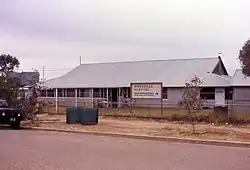 In February 1952 a prefabricated steel building was ordered from the Sidney Williams factory in Sydney. The materials were transported from Sydney by road to Birdsville via Broken Hill, Marree and the Birdsville track, a 2,000-mile (3,200 km) journey. The Rev. Les McKay spent a year in Birdsville assisting with the re-building.[1] The Queensland Governor, John Lavarack, visited Birdsville for the first time in June 1952 to set the corner post.[2]