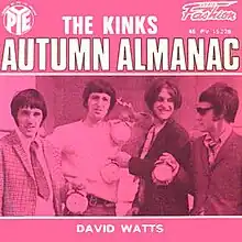 "Autumn Almanac" is a song written by Ray Davies and recorded by the rock group the Kinks in 1967. "Autumn Almanac" has since been noted for being an "absolute classic",[3] "a finely observed slice of English custom",[4] and a "weird character study",[5] and praised for its "mellow, melodic sound that was to characterize the Kinks' next [musical] phase..."[6] Some have placed this and other Davies compositions in the pastoral-Romantic tradition of the poetry of Wordsworth, among others.[7]