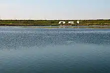 Büyükçekmece Dam was built to supply residential water to Istanbul. The construction started in 1983, and the dam was completed in 1988.[1] Water supply from the dam's reservoir went into service in 1989.[2] It is located in Büyükçekmece district on the European part of Istanbul on the Lake Büyükçekmece,[1] which is formed by disconnecting the stream Sarısu's outflow to the Marmara Sea.[2] It is an earth-fill embarkment dam of 13 m (43 ft) height.[1] The dam's catchment area is 620 km2 (240 sq mi).[2] The reservoir has a capacity of 162 hm3 (5.7×109 cu ft) covering a surface of 43 km2 (17 sq mi) at normal pool.[1] The reservoir water is sanitated before it is supplied to the households. Annual water supply capacity of the dam is 100,000,000 m3 (3.5×109 cu ft).[2]
