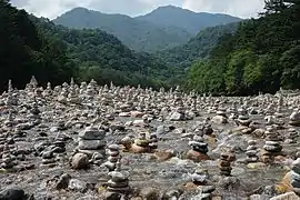 Baekdamsa (Korean: 백담사; Hanja: 百潭寺) is a Buddhist temple in Inje County, Gangwon province, South Korea. It was originally built in the 7th century, but because of war and natural disasters has been rebuilt numerous times since then. The present version was completed in 1957. Additionally, the name has also changed over time. Originally called Hangyesa, the new name reflects the "100 pits from Daecheongbong Peak to the temple".[1]